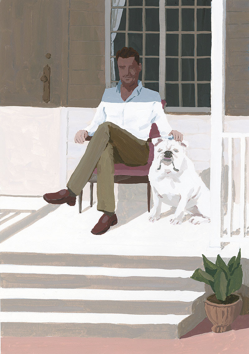 元大学フットボール全米王者で、現アラバマ大学法学部教授のトムを主人公にした法廷小説。トムが父が残した家の前で愛犬と共にいる場面を描いています。デザインはアルビレオさん。
