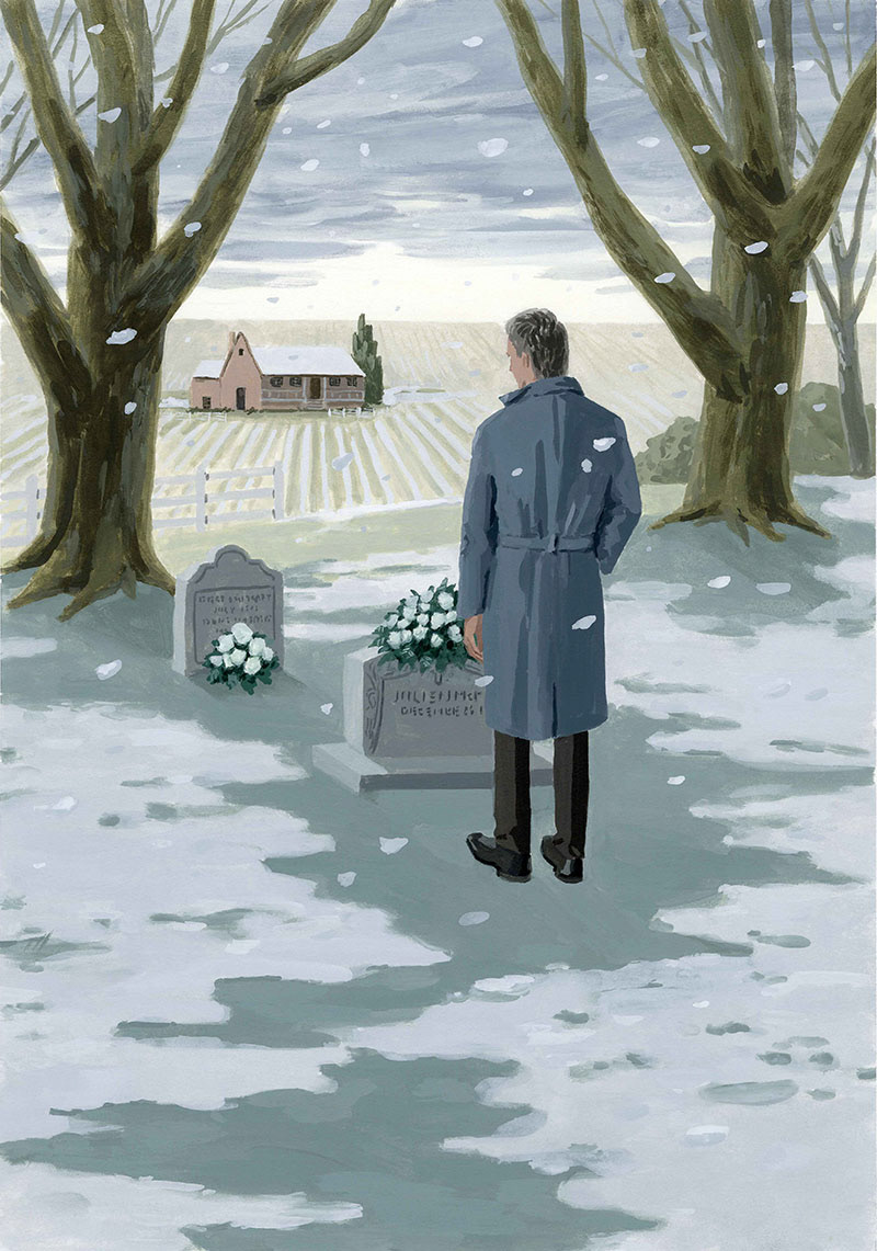 ロバート・ベイリーによる『ザ・プロフェッサー』『黒と白のはざま』に続く法廷シリーズの3作目。描いたのは物語の最後に末期癌を宣告された主人公が、クリスマスの日に家族の墓参りをする場面です。背景は主人公の父が残したアラバマの農場。