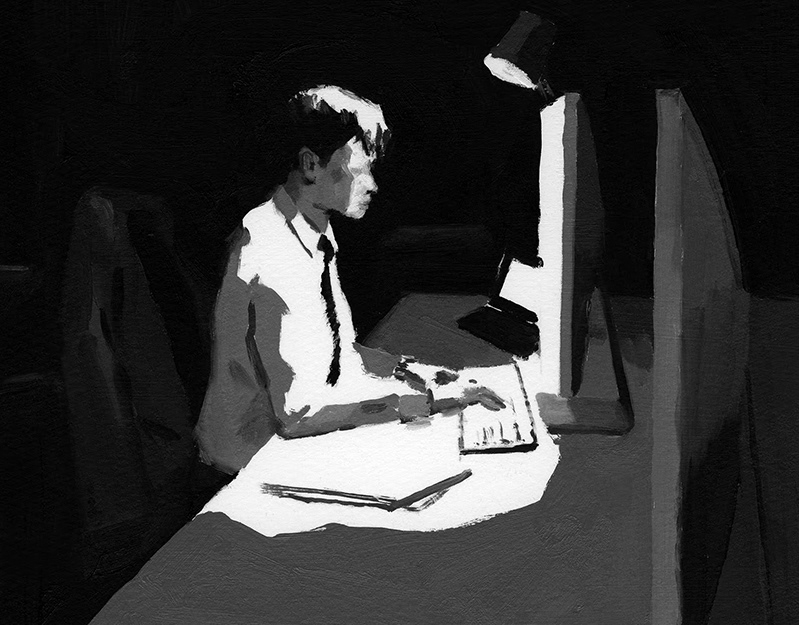 伊集院静氏のエッセイ集『作家の贅沢すぎる時間』のための装画。