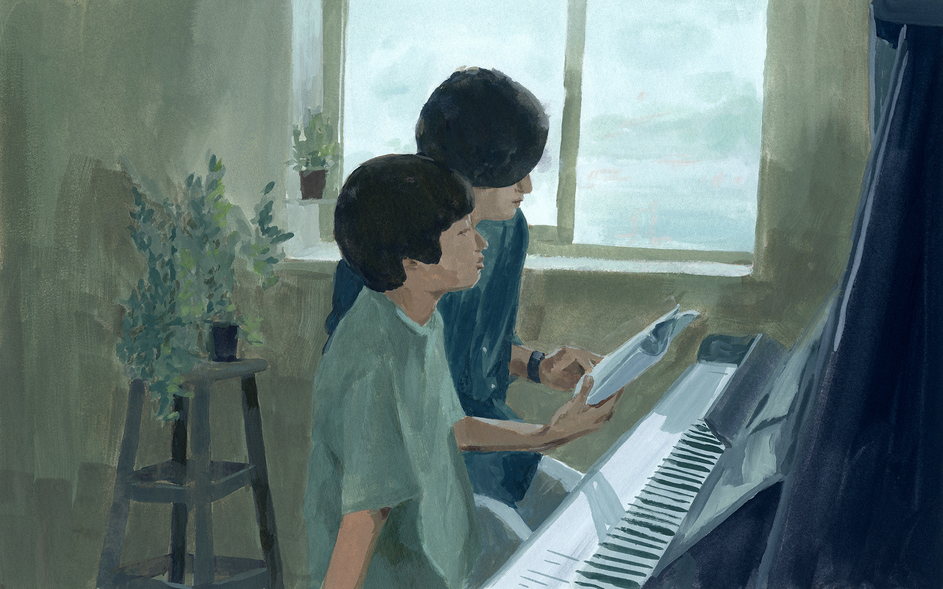 「新しいファミリー」をテーマとした山崎まどかさんによる映画コラムのためのイラストレーション。Milk Magazine JAPON Web で連載中。