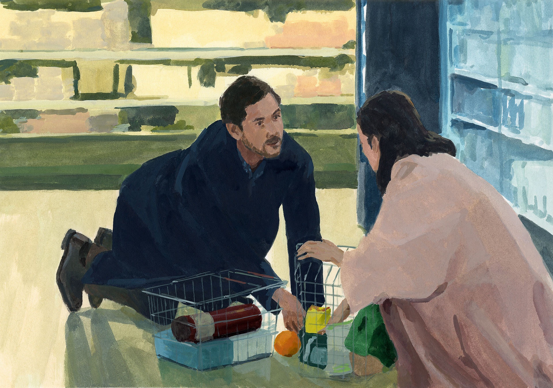 「新しいファミリー」をテーマとした山崎まどかさんによる映画コラムのためのイラストレーション。Milk Magazine JAPON Web で連載中。