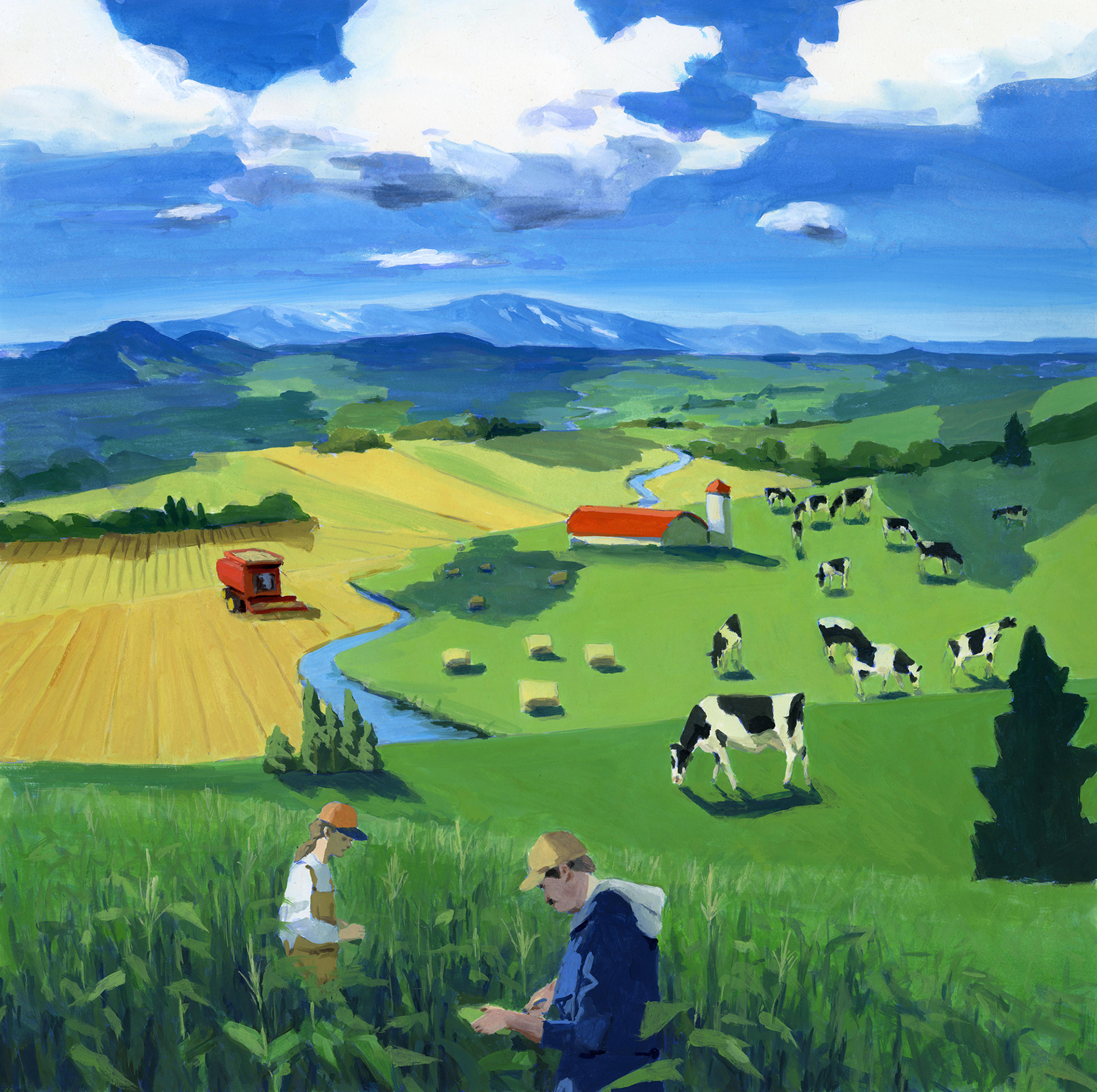 農業系スタートアップ企業のWebサイト用イラストレーションです。自然の循環と人の営みをテーマのイラストレーションをメインビジュアルとして描きました。他、企業が掲げる10の合言葉に対応するイラストレーションも描いております。